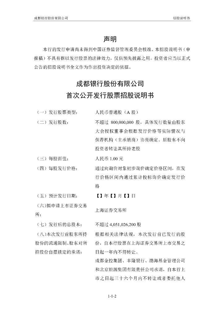 成都银行股份有限公司上交所主板IPO上市招股说明书.pdf