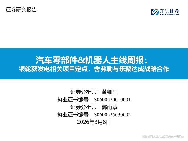 东吴证券:汽车零部件&机器人主线周报:银轮获发电相关项目定点,舍弗勒与乐聚达成战略合作.pdf