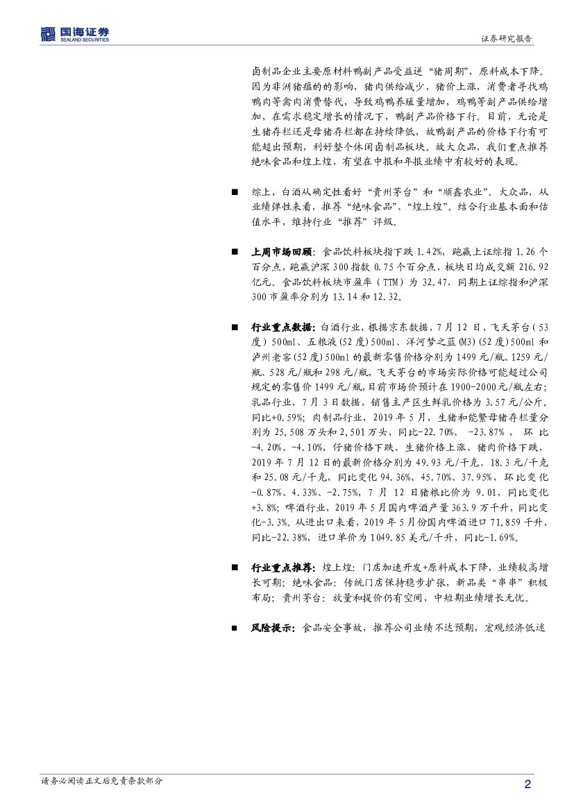国海证券:食品饮料行业周报:茅台中报业绩预告略低于预期,后继业绩增长主要看公司放量.pdf
