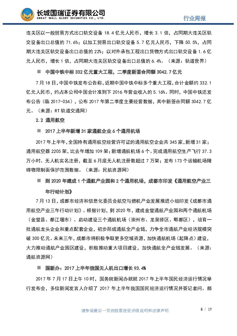 长城国瑞证券:机械设备行业周报2017年第28期( 总第50期):大连关区轨交设备出口大幅增长,通航产业稳步发展.pdf