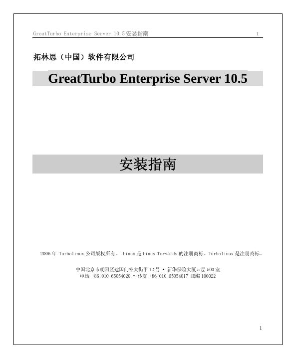 拓林思(中国)软件有限公司 GreatTurbo Enterprise Server 10.5 安装指南.pdf