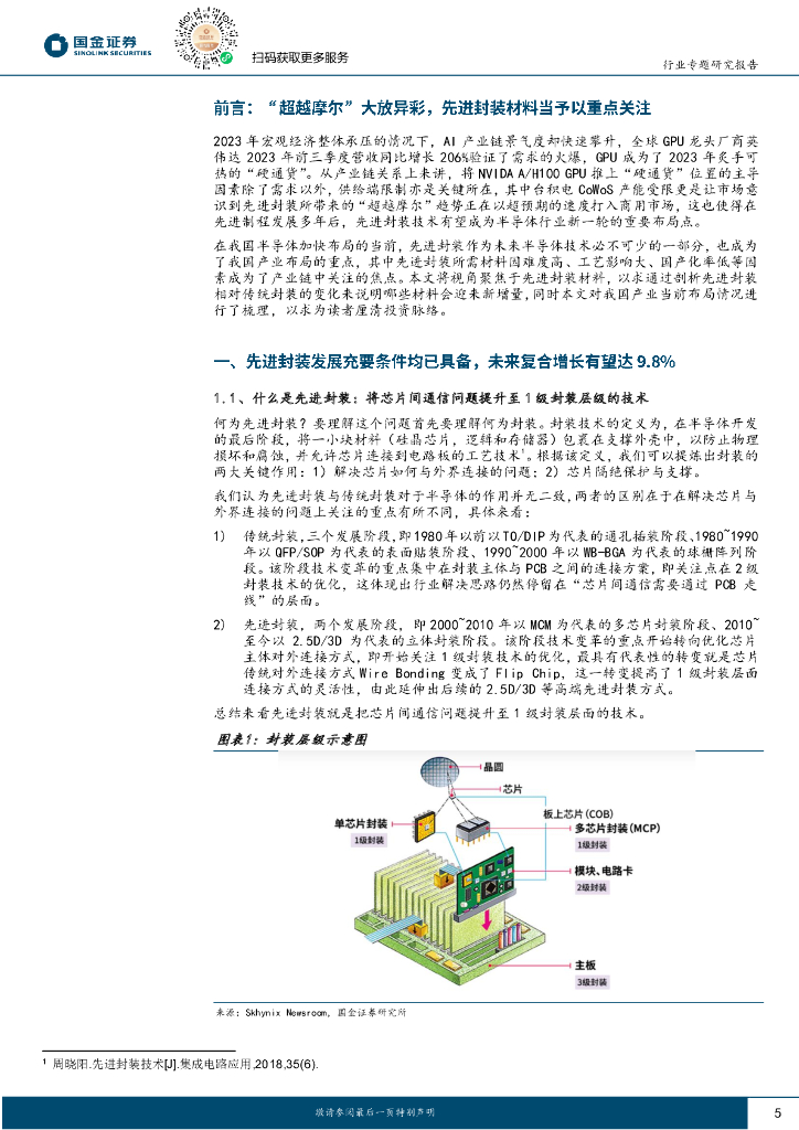 国金证券:电子行业专题研究报告:先进封装发展充要条件已具,关键材料国产替代在即.pdf