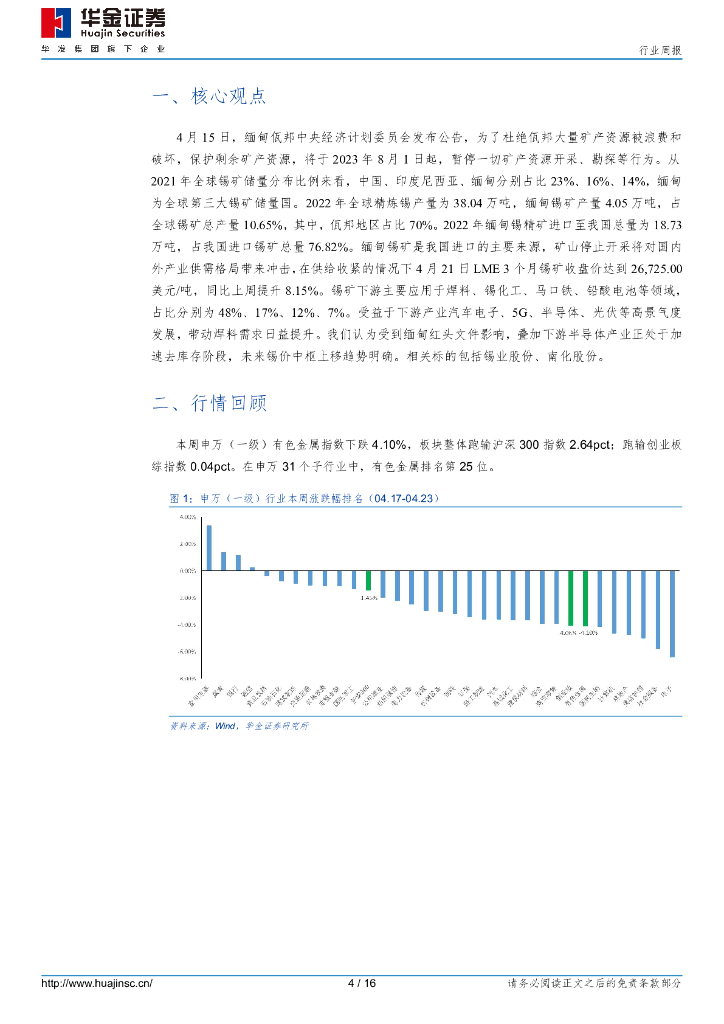 华金证券:有色金属行业周报:缅甸佤邦出台红头文件,锡矿供应紧张趋势加剧.pdf