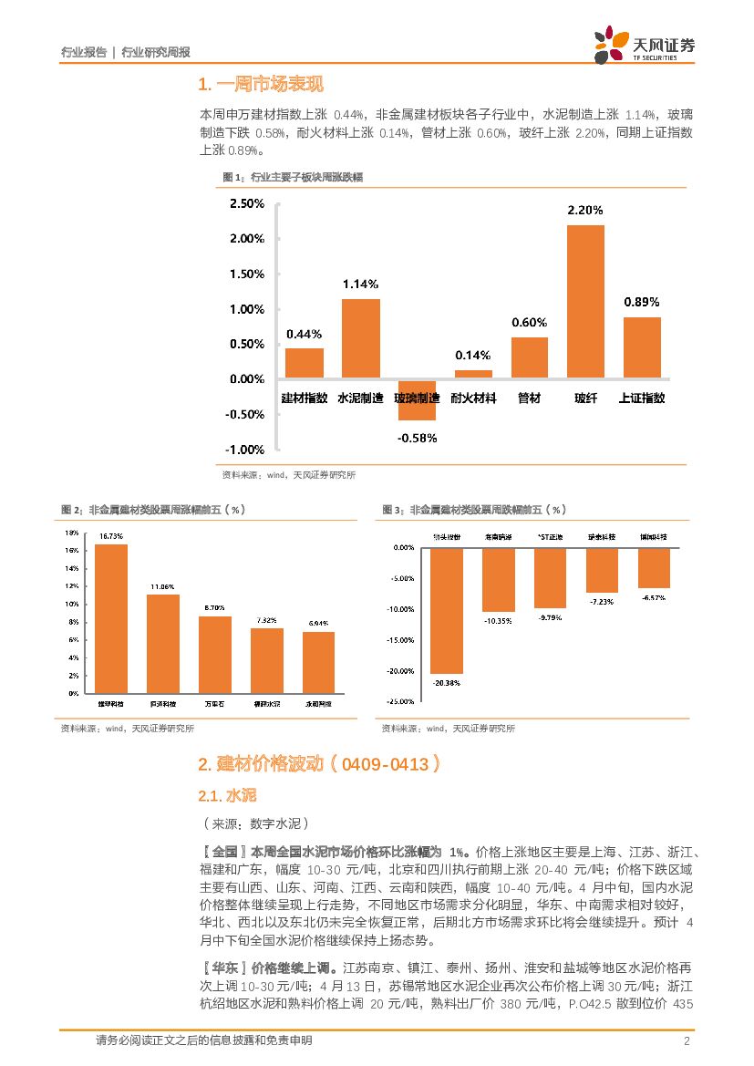 天风证券:建筑材料行业研究周报:关注一季报优异的龙头公司.pdf