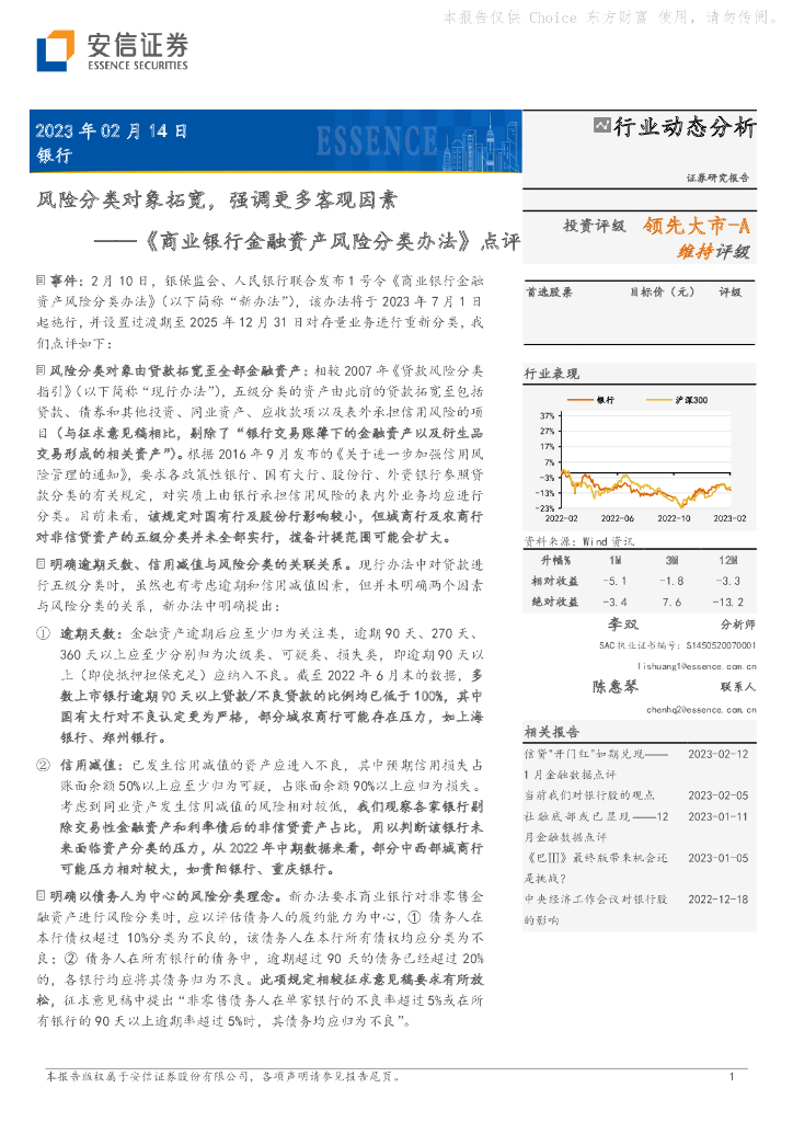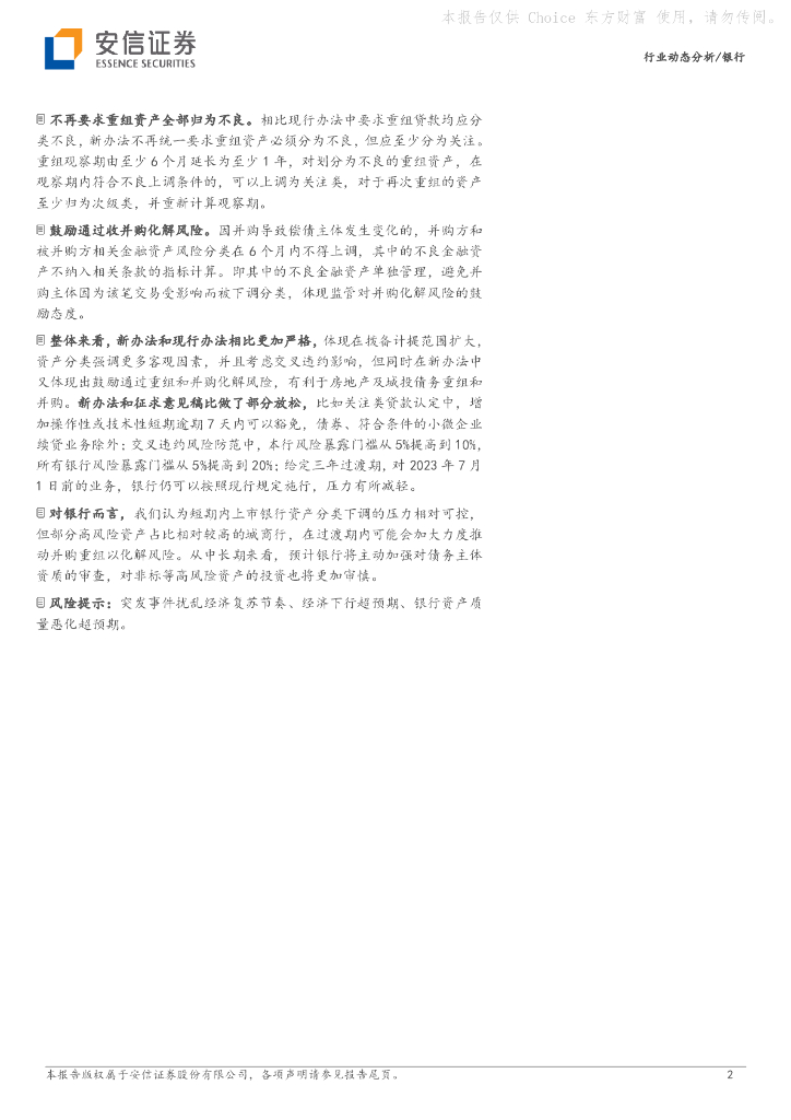 安信证券:《商业银行金融资产风险分类办法》点评:风险分类对象拓宽,强调更多客观因素.pdf