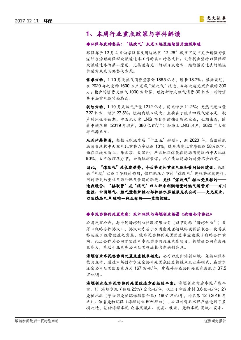 光大证券:环保行业周报:煤改气明年将更有序,水泥窑协同处置危废跑马圈地进行时.pdf