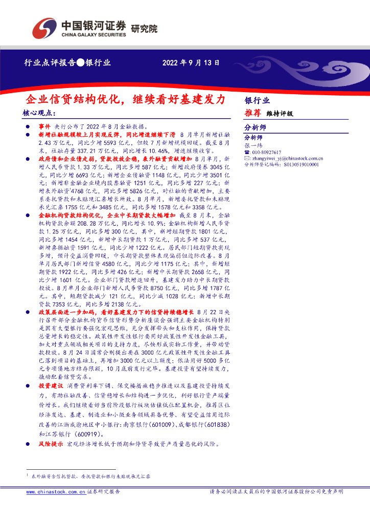 中国银河:银行业:企业信贷结构优化,继续看好基建发力.pdf