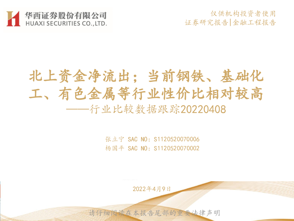华西证券:行业比较数据跟踪:北上资金净流出;当前钢铁、基础化工、有色金属等行业性价比相对较高.pdf