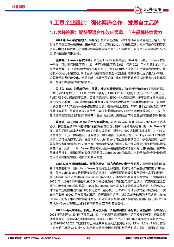 东海证券:机械设备行业周报:工具企业跟踪:强化渠道合作,发展自主品牌.pdf