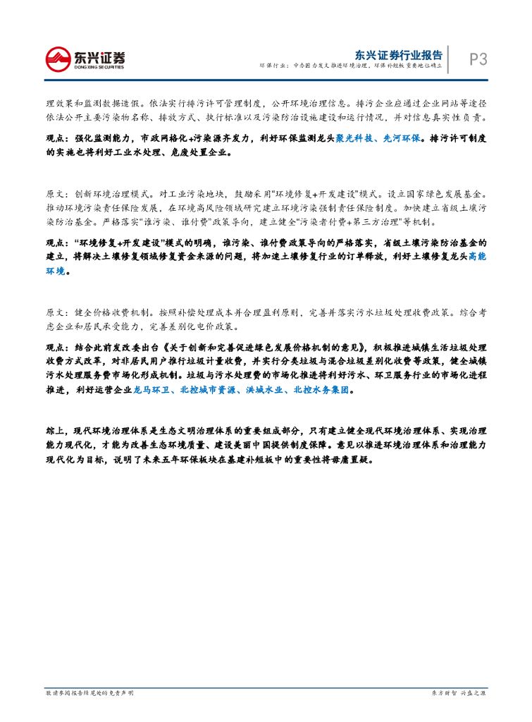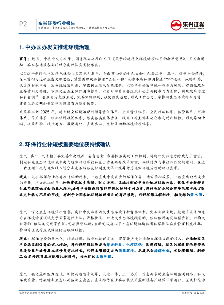东兴证券:环保行业政策点评:中办国办发文推进环境治理,环保补短板重要地位确立.pdf