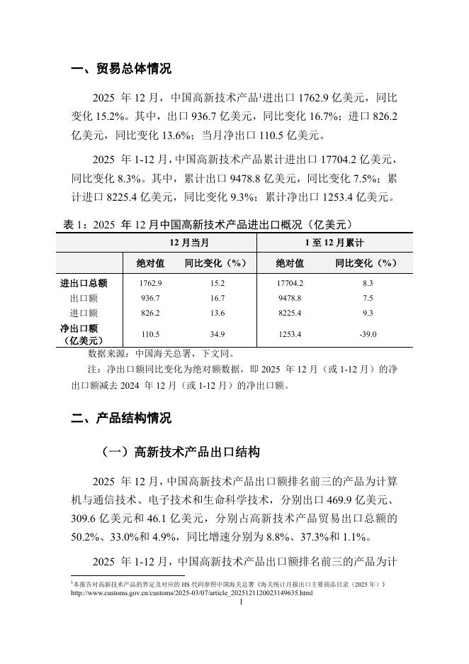 对外经济贸易大学:中国高新技术产品贸易月度监测报告(2025 年1-12月).pdf