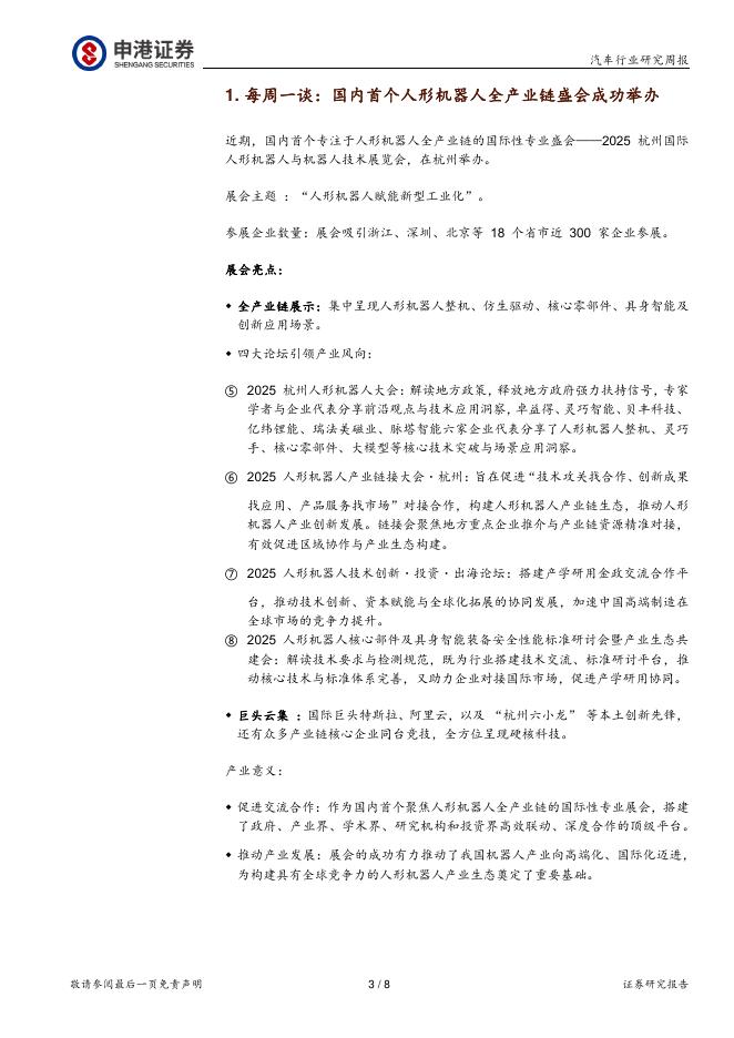 申港证券:汽车行业研究周报:国内首个人形机器人全产业链盛会成功举办.pdf