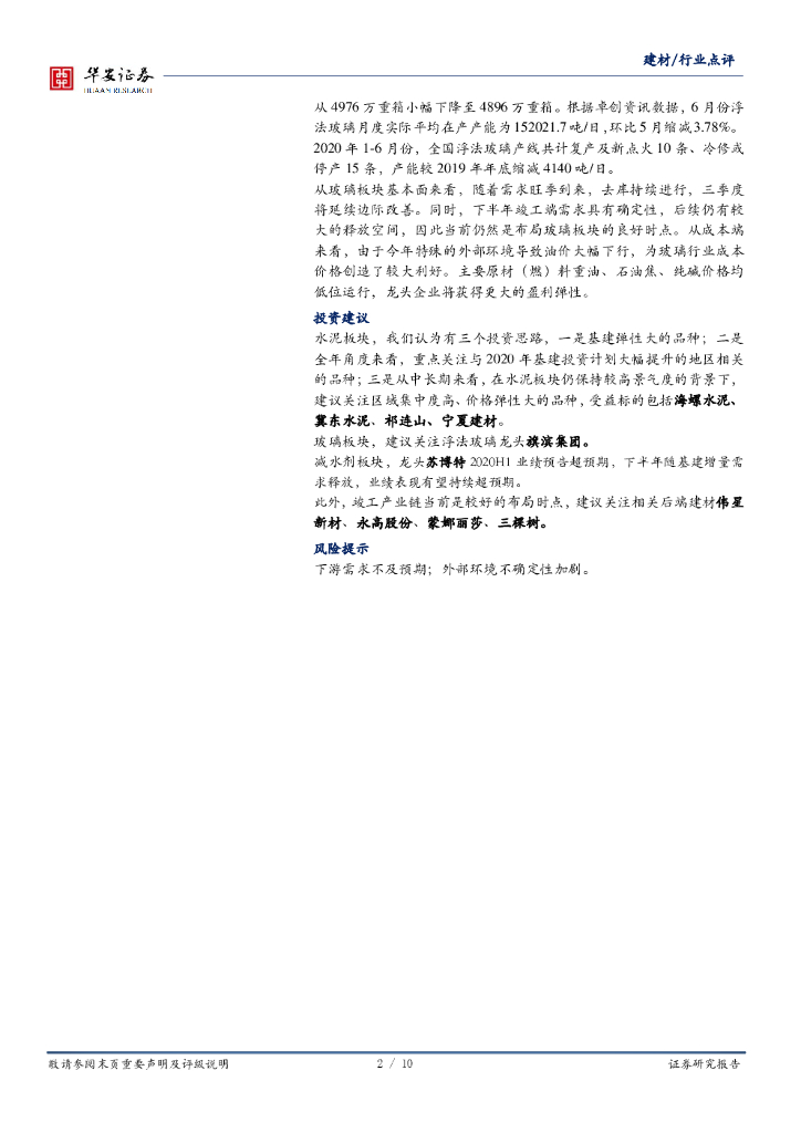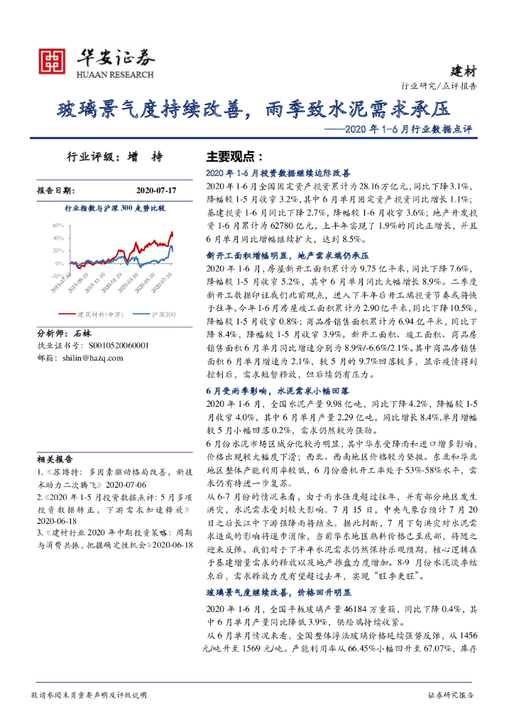 华安证券:建材2020年1-6月行业数据点评:玻璃景气度持续改善,雨季致水泥需求承压.pdf