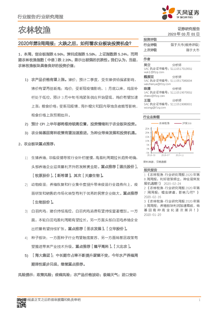 天风证券:农林牧渔2020年第9周周报:大跌之后,如何看农业板块投资机会?.pdf