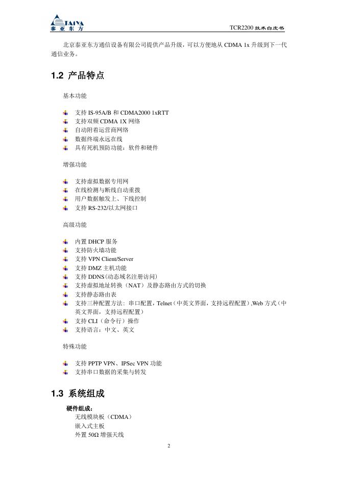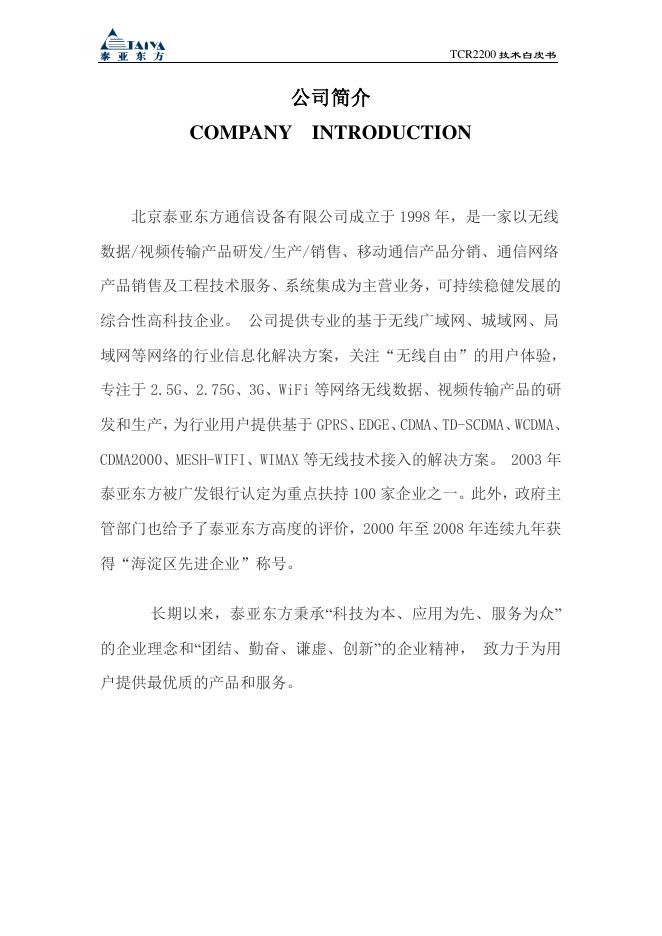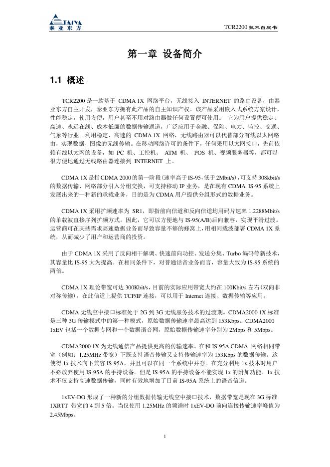 泰亚 CDMA 无线路由器 TCR2200 技术白皮书.pdf
