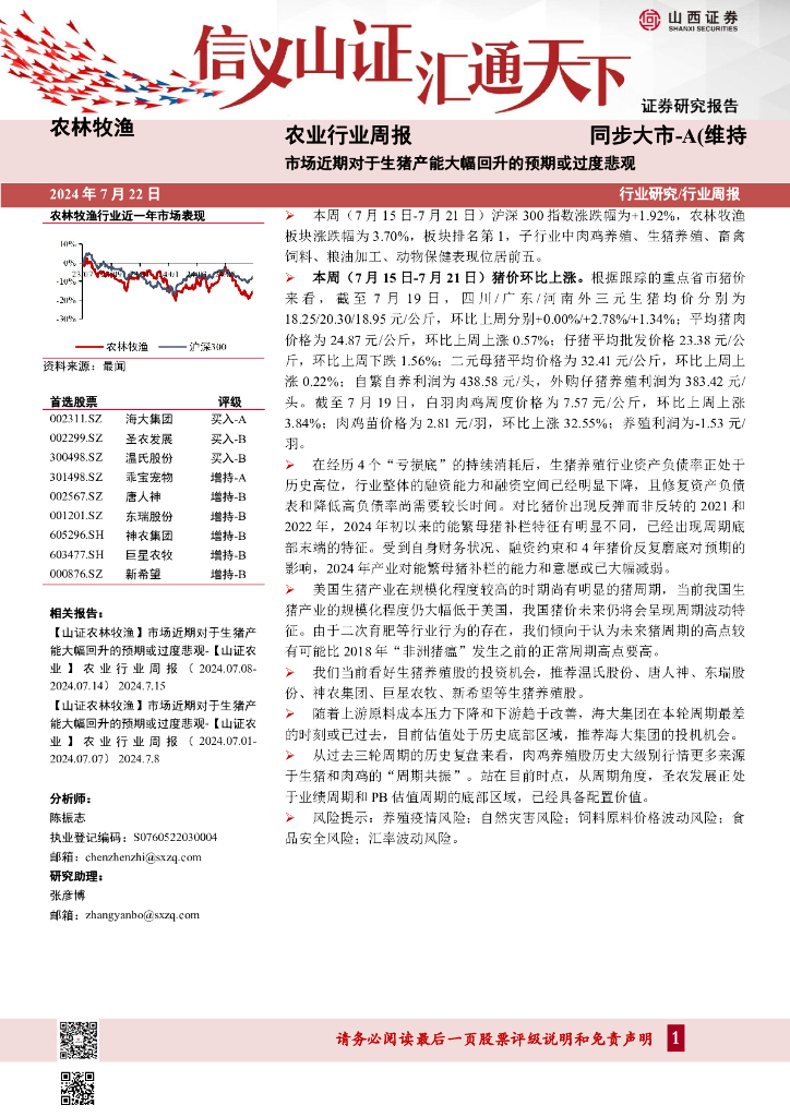 山西证券:农业行业周报:市场近期对于生猪产能大幅回升的预期或过度悲观.pdf