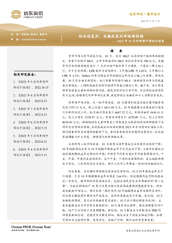 远东资信:经济弱复苏,关键政策利率继续持稳——2022年10月利率债市场运行报告.pdf