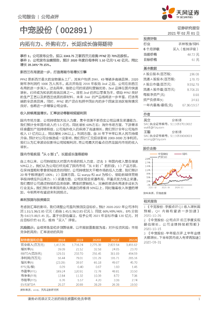 天风证券:中宠股份(002891)-内拓有力、外购有方,长期成长值得期待.pdf