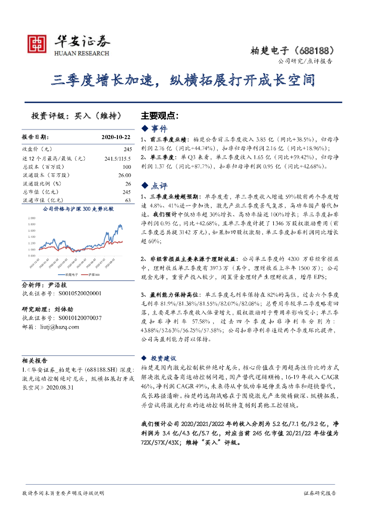 华安证券:柏楚电子(688188)-三季度增长加速,纵横拓展打开成长空间.pdf