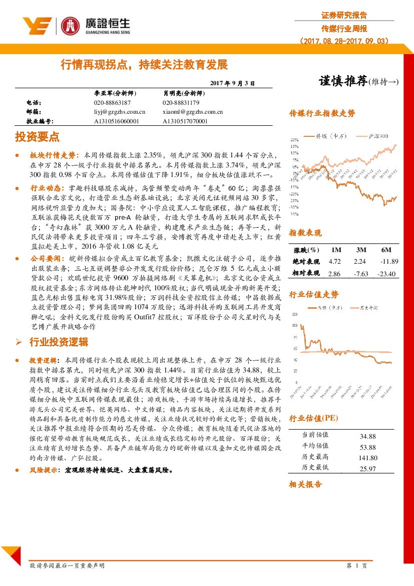 广证恒生证券研究所:传媒行业周报:行情再现拐点,持续关注教育发展.pdf