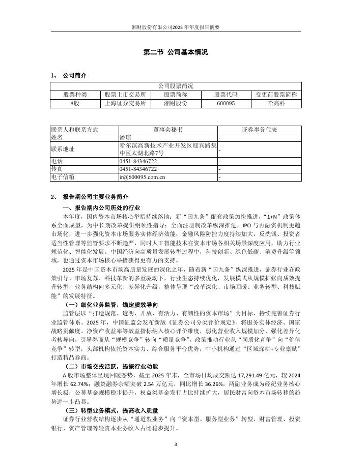 600095-湘财股份:湘财股份2025年年度报告摘要.pdf
