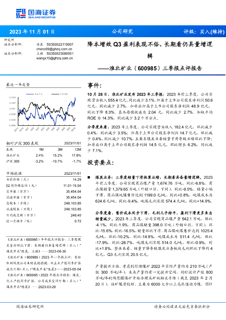 国海证券:淮北矿业(600985)-降本增效Q3盈利表现不俗,长期看仍具量增逻辑.pdf
