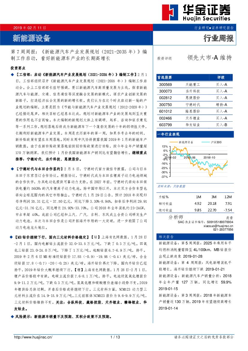 华金证券:新能源设备第7周周报:《新能源汽车产业发展规划(2021-2035年)》编制工作启动,看好新能源车产业的长期高增长.pdf