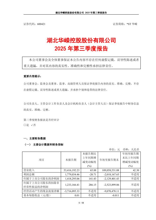600421-*ST华嵘:华嵘控股2025年三季度报告.pdf