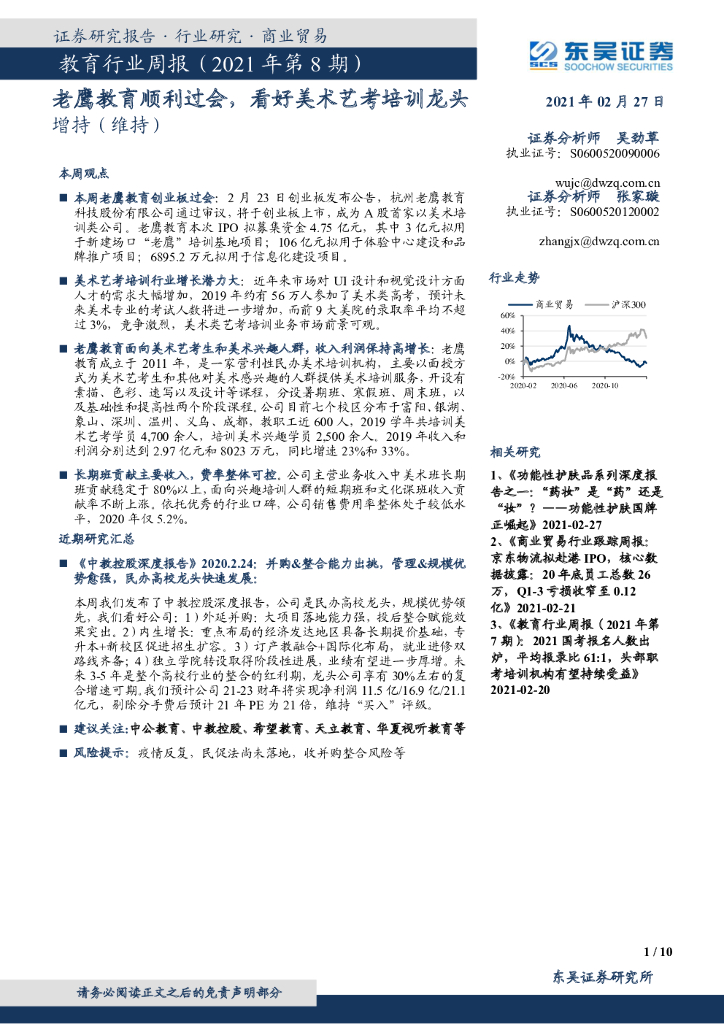 东吴证券:教育行业周报(2021年第8期):老鹰教育顺利过会,看好美术艺考培训龙头.pdf