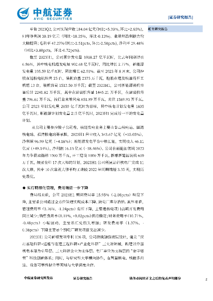 中航证券:中国核电(601985)-2023年中报点评:核电稳步发展,风光发电贡献增量.pdf