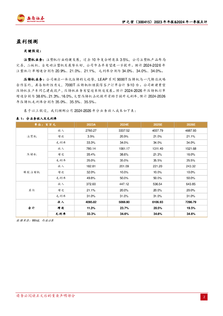 西南证券:伊之密(300415)-2024Q1利润增长略超预期,毛利率环比提升.pdf