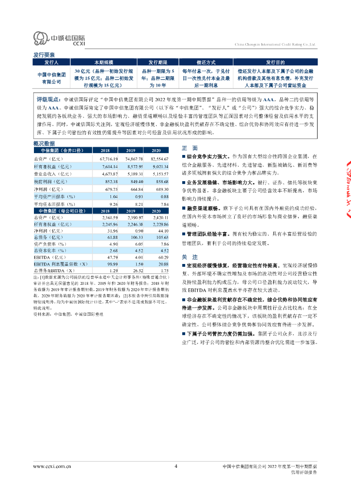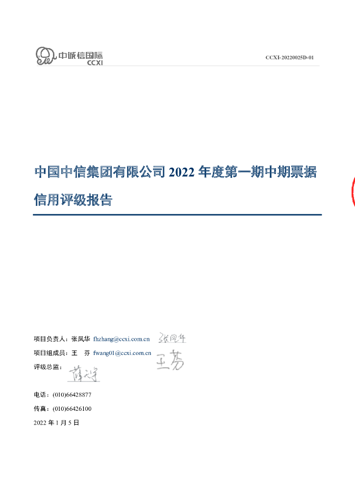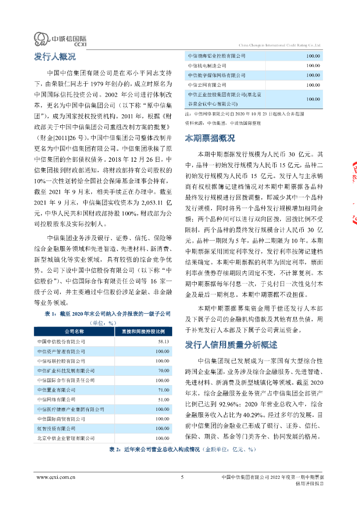 中诚信:中国中信集团有限公司2022年度第一期中期票据债项信用评级报告及跟踪评级安排.pdf