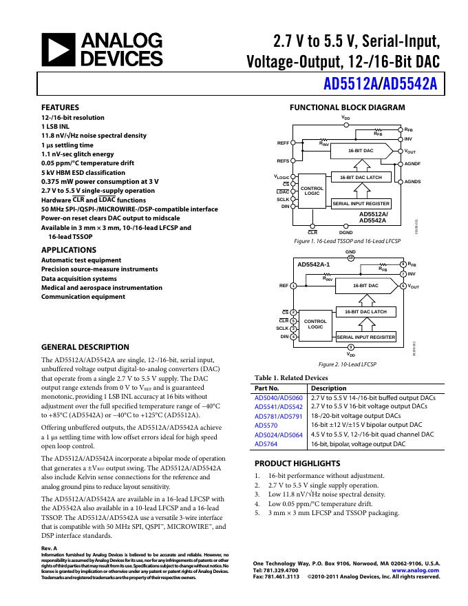 ANALOG DEVICES AD5542A 数据手册.pdf
