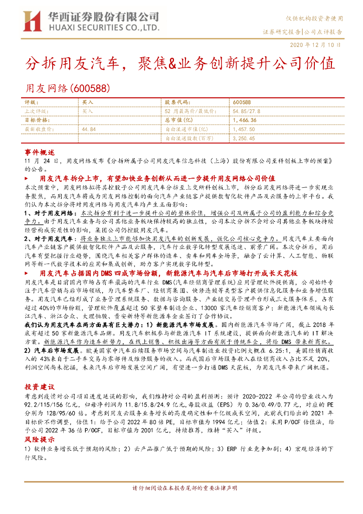 华西证券:用友网络(600588)-分拆用友汽车,聚焦&业务创新提升公司价值.pdf
