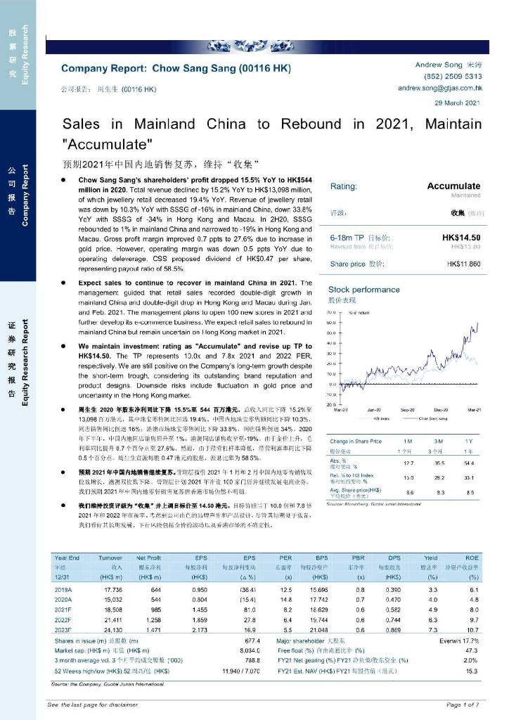 国泰君安证券(香港):周生生(00116)港股公司研究报告-预期2021年中国内地销售复苏,维持“收集”.pdf