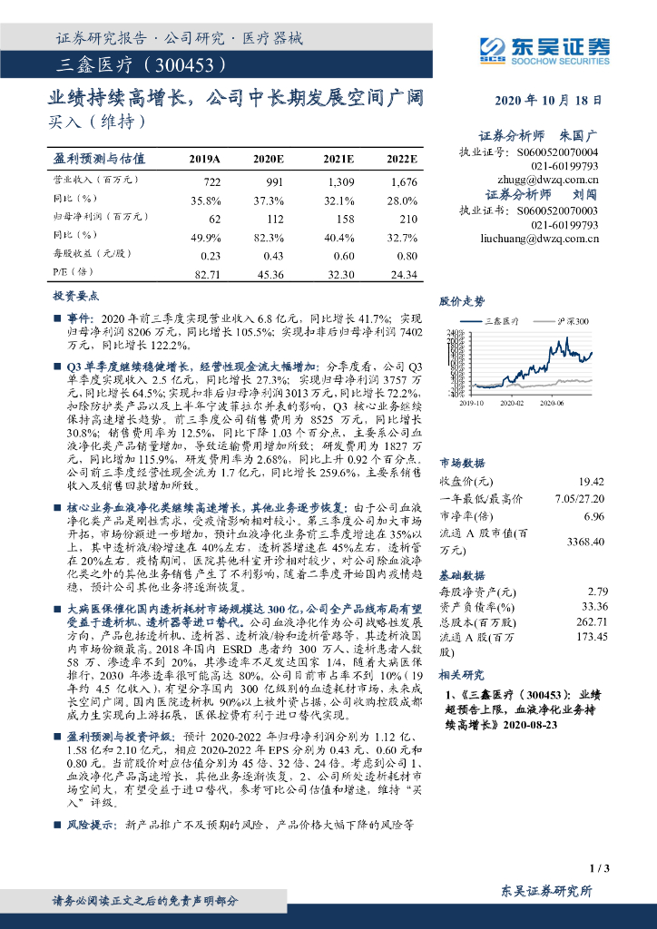 东吴证券:三鑫医疗(300453)-业绩持续高增长,公司中长期发展空间广阔.pdf