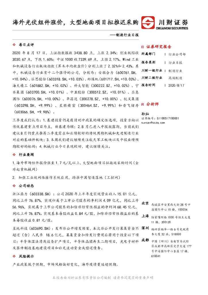 川财证券:制造行业日报:海外光伏组件涨价,大型地面项目拟推迟采购.pdf