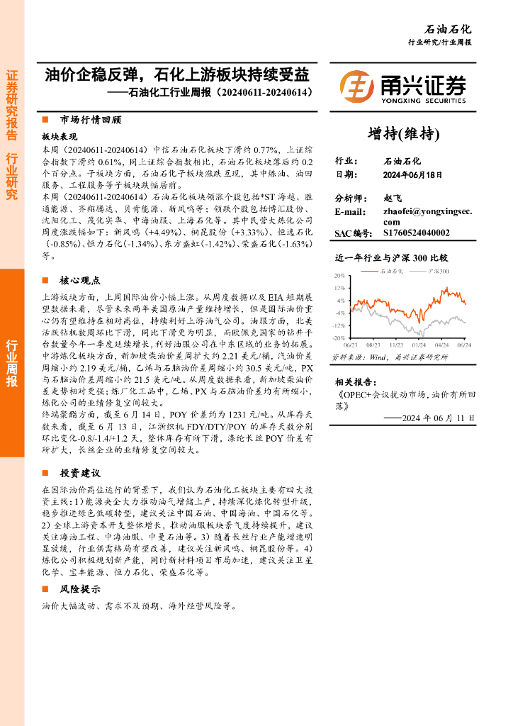 甬兴证券:石油化工行业周报:油价企稳反弹,石化上游板块持续受益.pdf