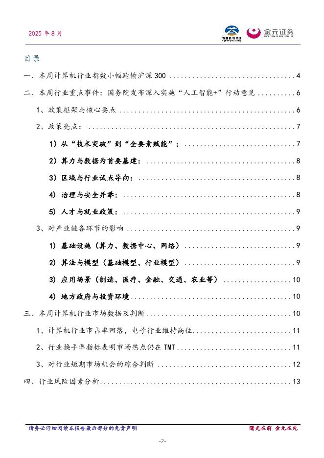 金元证券:计算机行业周报:国务院发布深入实施“人工智能+”行动意见.pdf