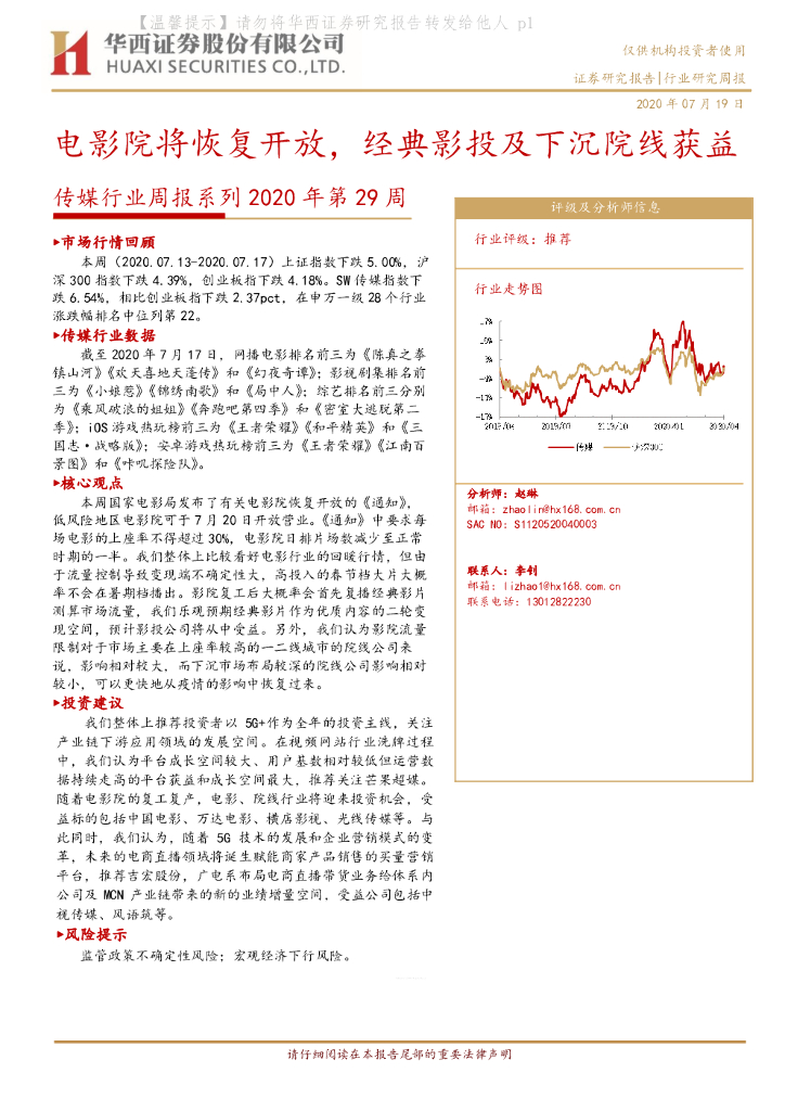 华西证券:传媒行业周报系列2020年第29周:电影院将恢复开放,经典影投及下沉院线获益.pdf
