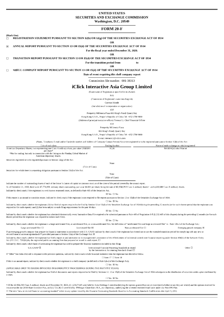 iClick Interactive Asia Group Limited(ICLK)2020财年年度报告(英文版).pdf