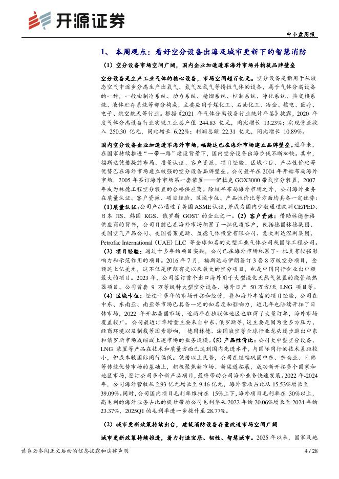 开源证券:中小盘周报:看好空分设备出海及城市更新下的智慧消防,关注半导体探针台设备.pdf