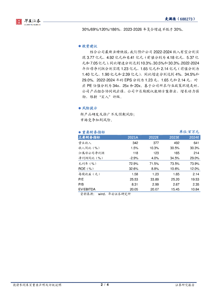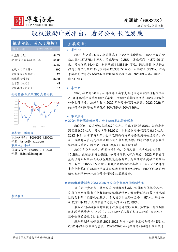 华安证券:麦澜德(688273)-股权激励计划推出,看好公司长远发展.pdf