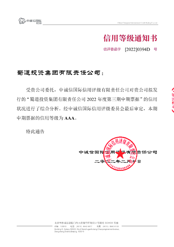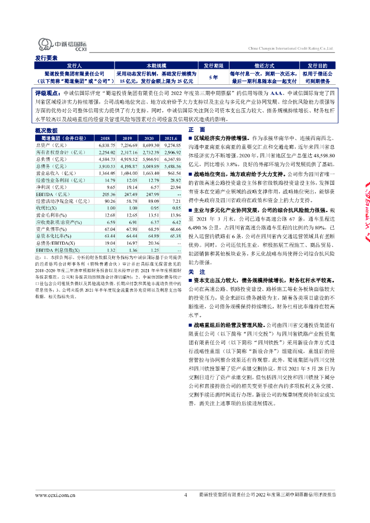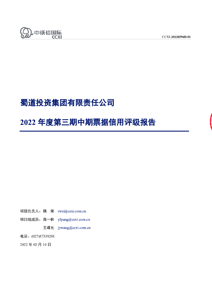 中诚信:蜀道投资集团有限责任公司2022年度第三期中期票据债项信用评级报告及跟踪评级安排.pdf
