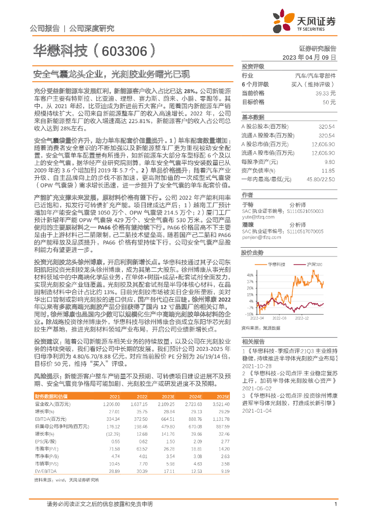 天风证券:华懋科技(603306)-安全气囊龙头企业,光刻胶业务曙光已现.pdf