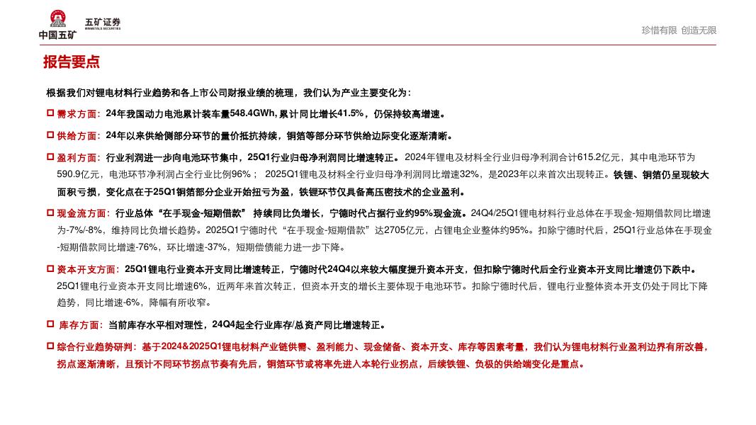 五矿证券:2024年报&2025Q1锂电材料行业趋势:盈利边际改善显现,静待行业拐点.pdf