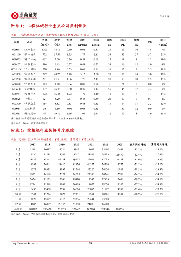 浙商证券:工程机械行业点评报告:10月挖机销量降幅收窄,期待出口企稳、稳增长、更新周期启动.pdf