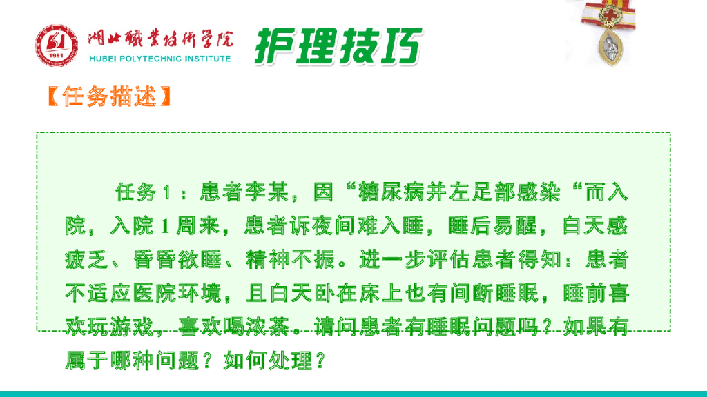 《护理技巧》演示文稿-任务七 促进休息与睡眠.pdf