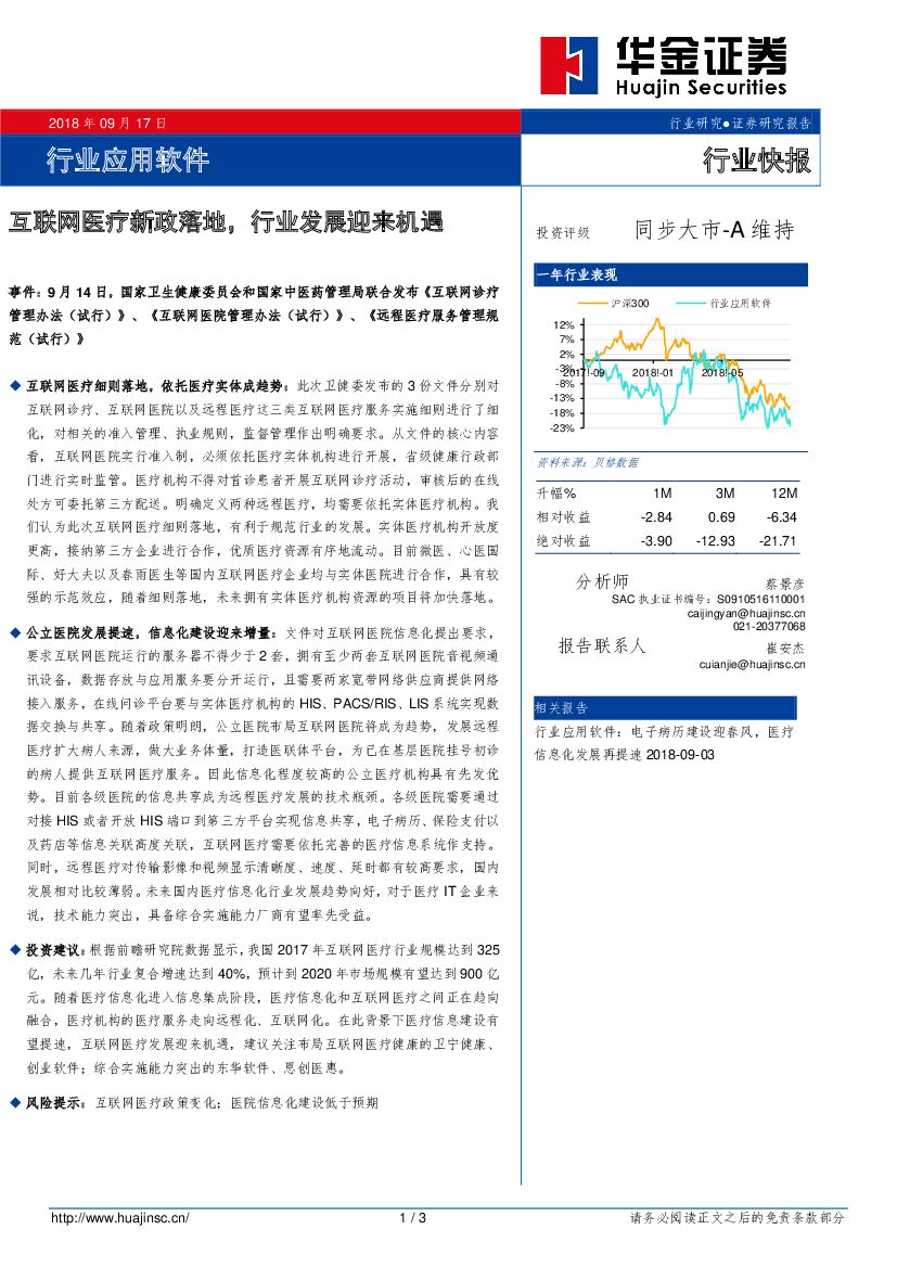 华金证券:行业应用软件行业快报:互联网医疗新政落地,行业发展迎来机遇.pdf