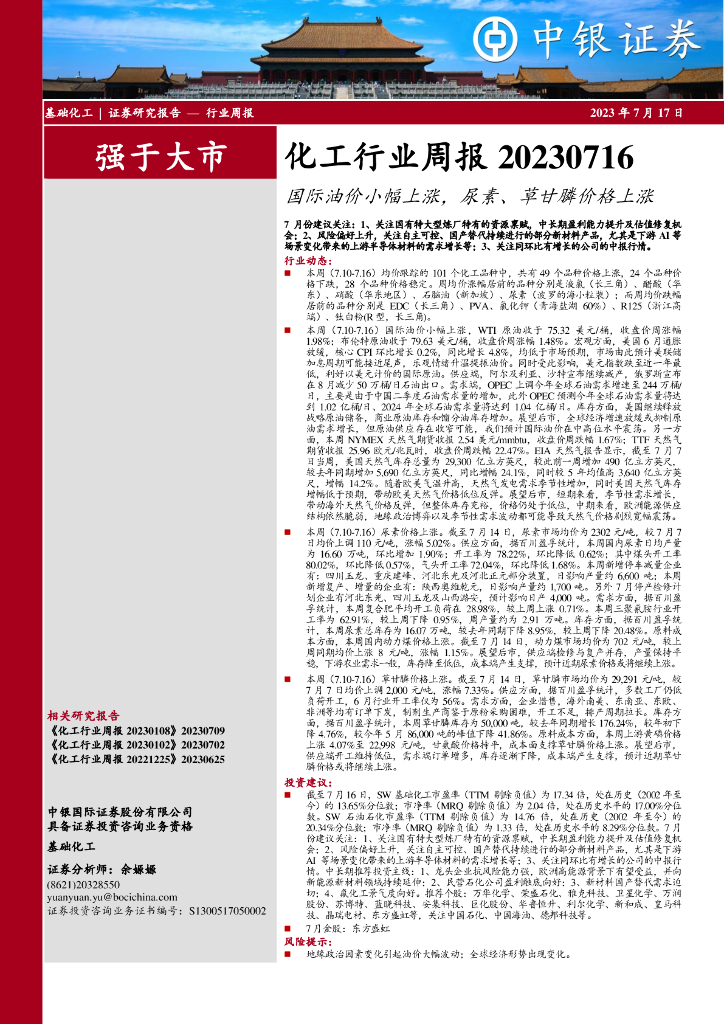 中银证券:化工行业周报:国际油价小幅上涨,尿素、草甘膦价格上涨.pdf